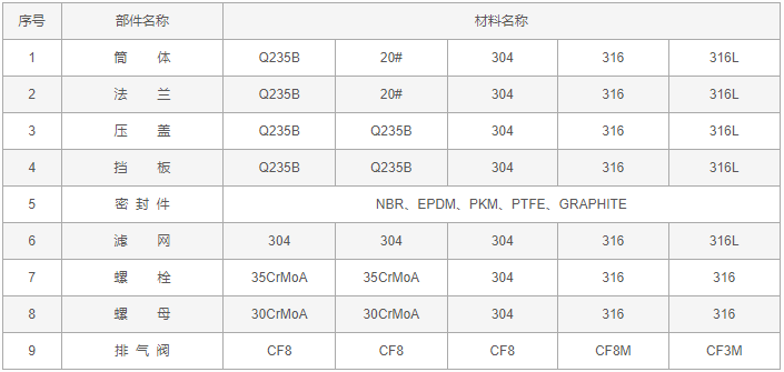 消氣過濾器零件材料: