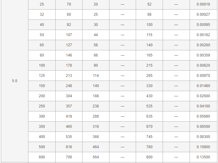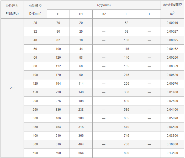 尖頂錐形過濾器外形尺寸表: