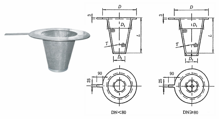 平頂錐形過濾器外形結(jié)構(gòu)圖: