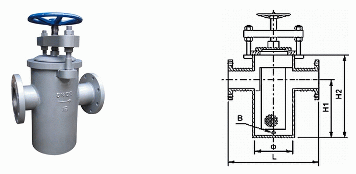 手輪快開籃式過濾器外形結(jié)構(gòu)圖:
