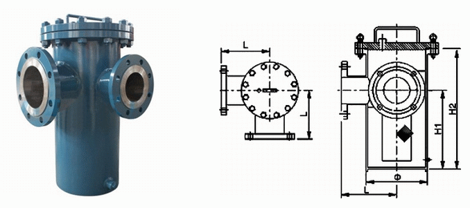 角通籃式過濾器外形結(jié)構(gòu)圖:
