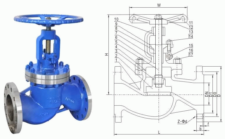 德標(biāo)截止閥外形結(jié)構(gòu)圖:
