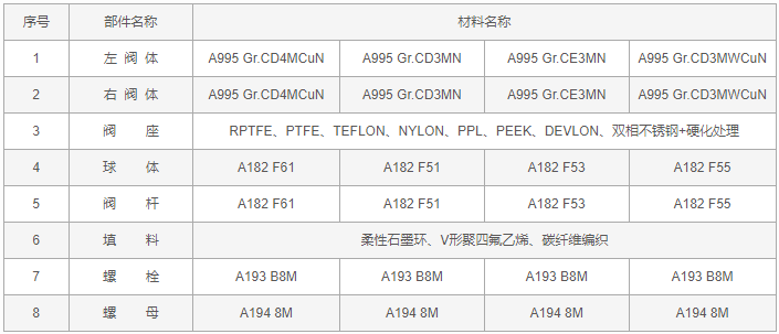 美標(biāo)雙相鋼球閥零件材料: