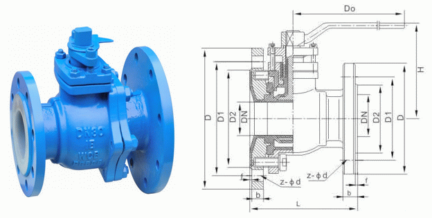 3、采用特殊模壓工藝,將襯里材料襯于閥門殼體內壁,能耐強酸、強堿介質的腐蝕。襯里球面與PTFE閥座組合,密封性好,達到了零泄漏。