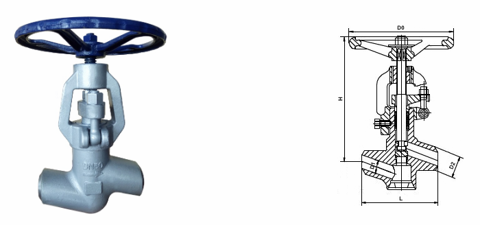 帶倒密封截止閥外形結(jié)構(gòu)圖: