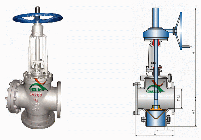 手動(dòng)角式料漿閥外形結(jié)構(gòu)圖: