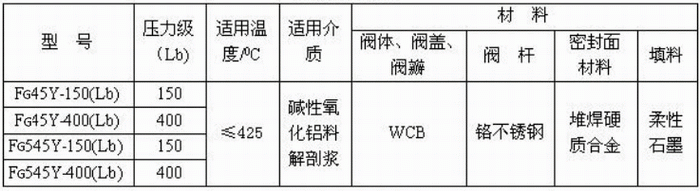 管接料漿閥性能參數(shù):