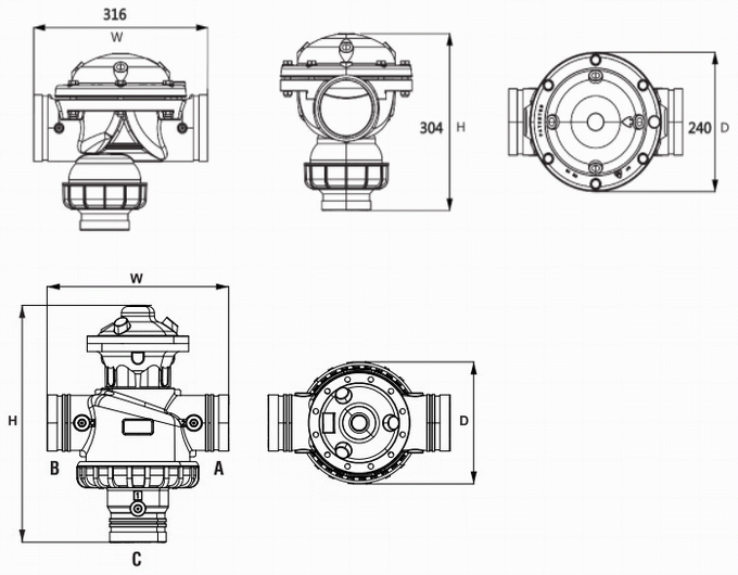 塑料反沖洗控制閥外形結(jié)構(gòu)圖: