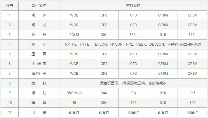 電動(dòng)V型切斷球閥零件材料: