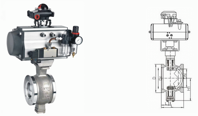 | 對夾式氣動V型切斷球閥 |