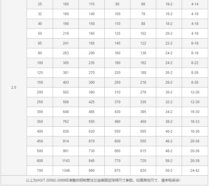固定式球閥外形尺寸表: