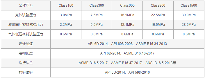 美標固定式球閥產(chǎn)品的設計和制造符合《API 6D-2014管線和管道閥門規(guī)范》、《API 608-2008法蘭、螺紋和焊連接的金屬球閥》、《ASME B16.34-2013法蘭、螺紋和焊接端連接的閥門》要求,其結(jié)構(gòu)長度可采用《API 6D-2014管線和管道閥門規(guī)范》、《ASME B16.10-2017閥門結(jié)構(gòu)長度》等,連接端按照ASME B16.5、ASME B16.47、ANSI B16.5、ASME B16.25等尺寸,檢驗和試驗遵循《API 6D-2014管線和管道閥門規(guī)范》、《API 598-2016閥門的檢查和試驗》標準。