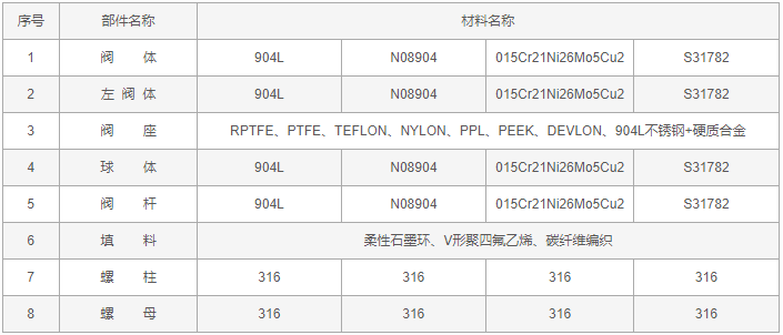 904L不銹鋼球閥零件材料: