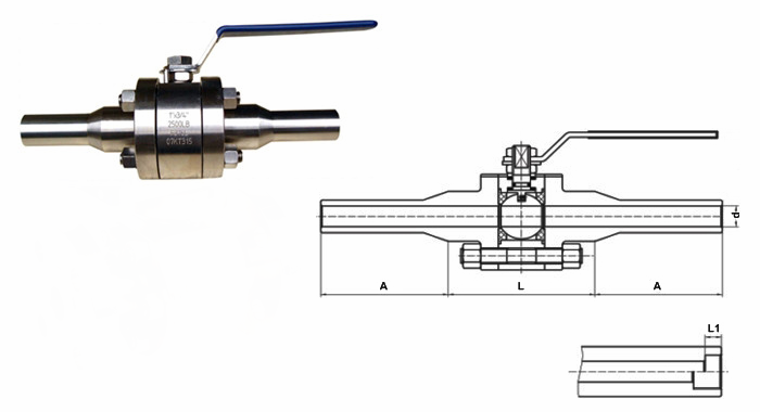 加長型焊接高壓球閥外形結(jié)構(gòu)圖: