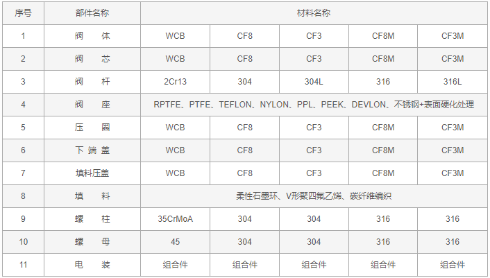 電動V型球閥零件材料: