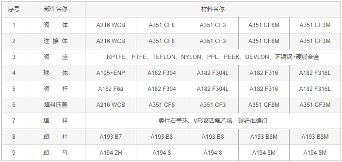 美標(biāo)法蘭球閥屬于浮動(dòng)球球閥,其設(shè)計(jì)制造標(biāo)準(zhǔn)是按《API 6D-2014管線和管道閥門規(guī)范》、《API 608-2008法蘭、螺紋和焊連接的金屬球閥》、《ASME B16.34-2013法蘭、螺紋和焊接端連接的閥門》要求,連接法蘭尺寸采用ASME B16.5、ASME B16.47、ANSI B16.5等。該閥按照密封材質(zhì)的不同,其有軟密封和硬密封兩種,軟密封一般采用聚醚醚酮(PEEK)、對(duì)位聚苯(PPL)、聚四氟乙烯(PTFE)及尼龍等作為密封圈材料,硬密封則使用合金鋼或不銹鋼堆焊硬質(zhì)合金等,閥體材質(zhì)可選用碳鋼、合金鋼、不銹鋼及其他特種材料。
