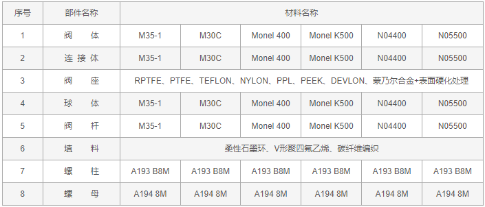 蒙乃爾合金球閥有整體和內(nèi)件兩大類型,整體型是指球閥的閥體和內(nèi)件均為Monel合金,其主要用在煉油廠烷基化裝置中的氫氟酸再生塔部分以及催化劑的無灰添加劑的生產(chǎn)和氯堿廠高濃度氯堿液系統(tǒng)等工況中。內(nèi)件型系指球閥的閥體為碳鋼或不銹鋼,內(nèi)件材質(zhì)為蒙乃爾合金,其中以碳鋼為殼體的Monel合金內(nèi)件球閥主要用于煉油廠烷基化裝置HF酸系統(tǒng)的低溫區(qū)域及海水等介質(zhì)的工況中,而閥門殼體材質(zhì)為不銹鋼的蒙乃爾合金內(nèi)件球閥是用在乙烯、丙烯、液氧、純氧及海水和合金其他工況中。