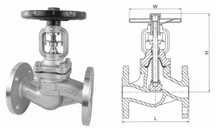 不銹鋼波紋管截止閥外形結(jié)構(gòu)圖: