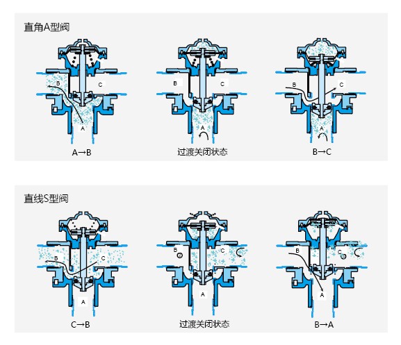 兩位三通閥適用于各種介質(zhì)過濾器、盤片過濾器和網(wǎng)狀過濾器等的系統(tǒng)配套應(yīng)用,隔膜驅(qū)動的閥塞可以在過濾器單元反洗時,首先關(guān)閉進水,然后采用過濾后水對過濾介質(zhì)或過濾單元進行反沖洗并排走,實現(xiàn)了一閥多用的功能。閥門使用時由來自系統(tǒng)的水壓或氣壓源來控制開閉,通過有至少三個通路的電磁閥、分配器或手動先導閥等來的控制信號實現(xiàn)閥門切換,這樣就有兩種狀態(tài):