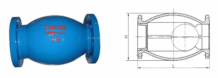 無磨損球形止回閥外形結(jié)構(gòu)圖: