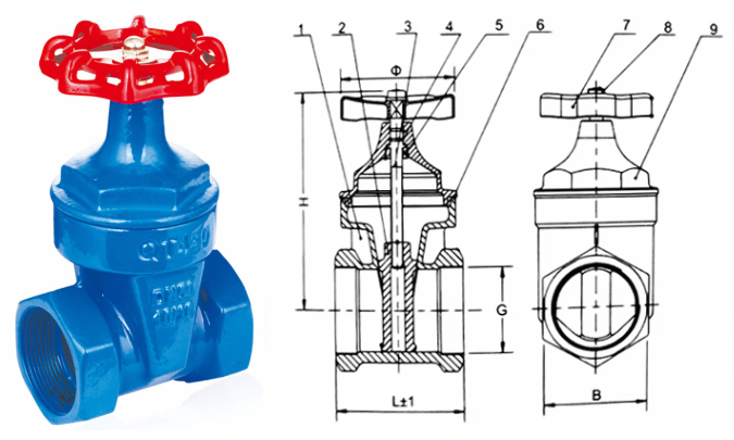 絲扣軟密封閘閥外形結(jié)構(gòu)圖: