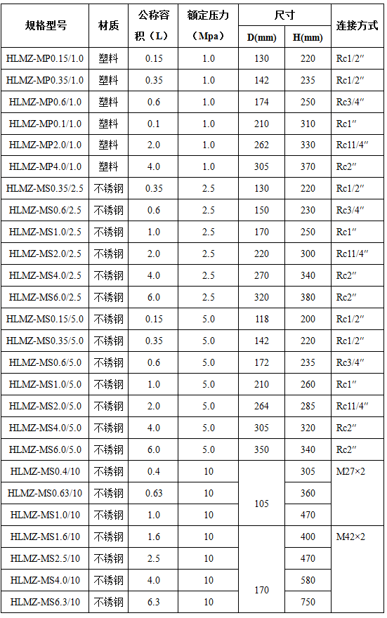 膜片式脈沖阻尼器連接尺寸: