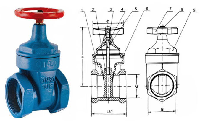 絲口軟密封閘閥外形結構圖: