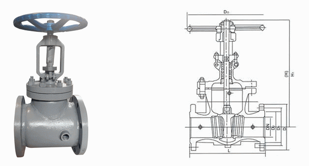 碳鋼保溫閘閥外形結(jié)構(gòu)圖:
