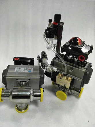 Q684F氣動快裝L型三通球閥用于青島啤酒閔行基地車間生產(chǎn)線